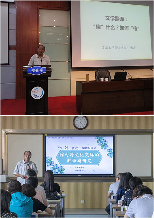 3日下午,张冲教授以“文学翻译:‘信’什么?如何‘信’”为题,从翻译的“音、义、事、情、蕴”讲起,通过赏析典型的英译汉、汉译英案例,提出翻译的主要标准是“信”,译者的译文一定要忠实于原文,指出要做好汉英翻译,译者应广泛阅读中国古典文学作品,最后得出“译者永远是一个决策人”的结论。